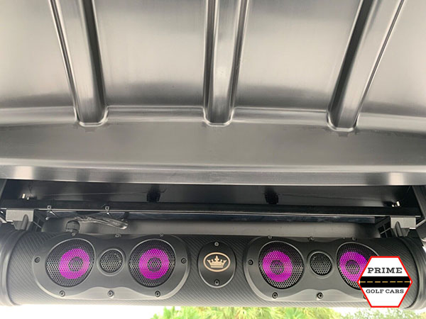 Front storage space and battery system in a 6 passenger Elite EV golf cart