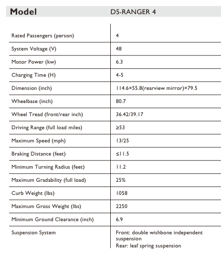 Click cart links for more information and specifications on an individual cart.